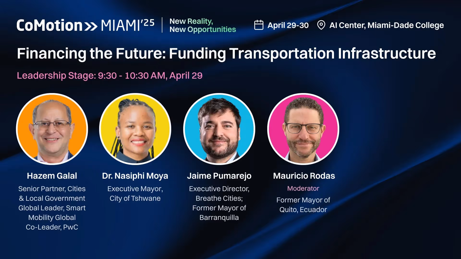 Come and find out more at CoMotion MIAMI ‘25 on April 29-30, where SUMIT Co-Chair Mauricio Rodas will participate in a panel discussion Financing the Future: Funding Transportation Infrastructure and lead an interactive workshop ‘Funding the Future: Strategies That Drive Urban Mobility Innovation’ exploring innovative financial strategies, public-private partnerships, and creative solutions to mobilize resources for sustainable infrastructure projects.